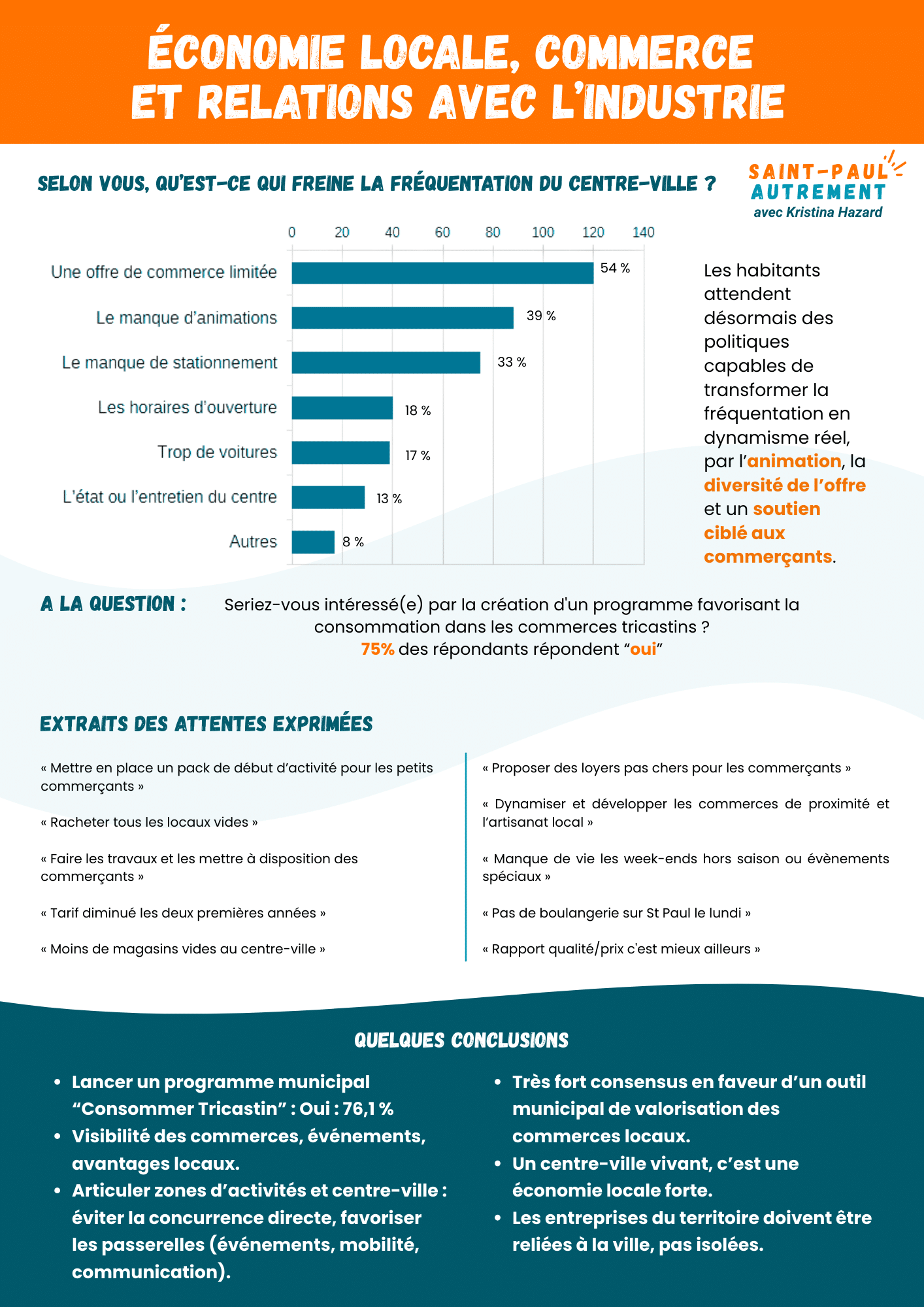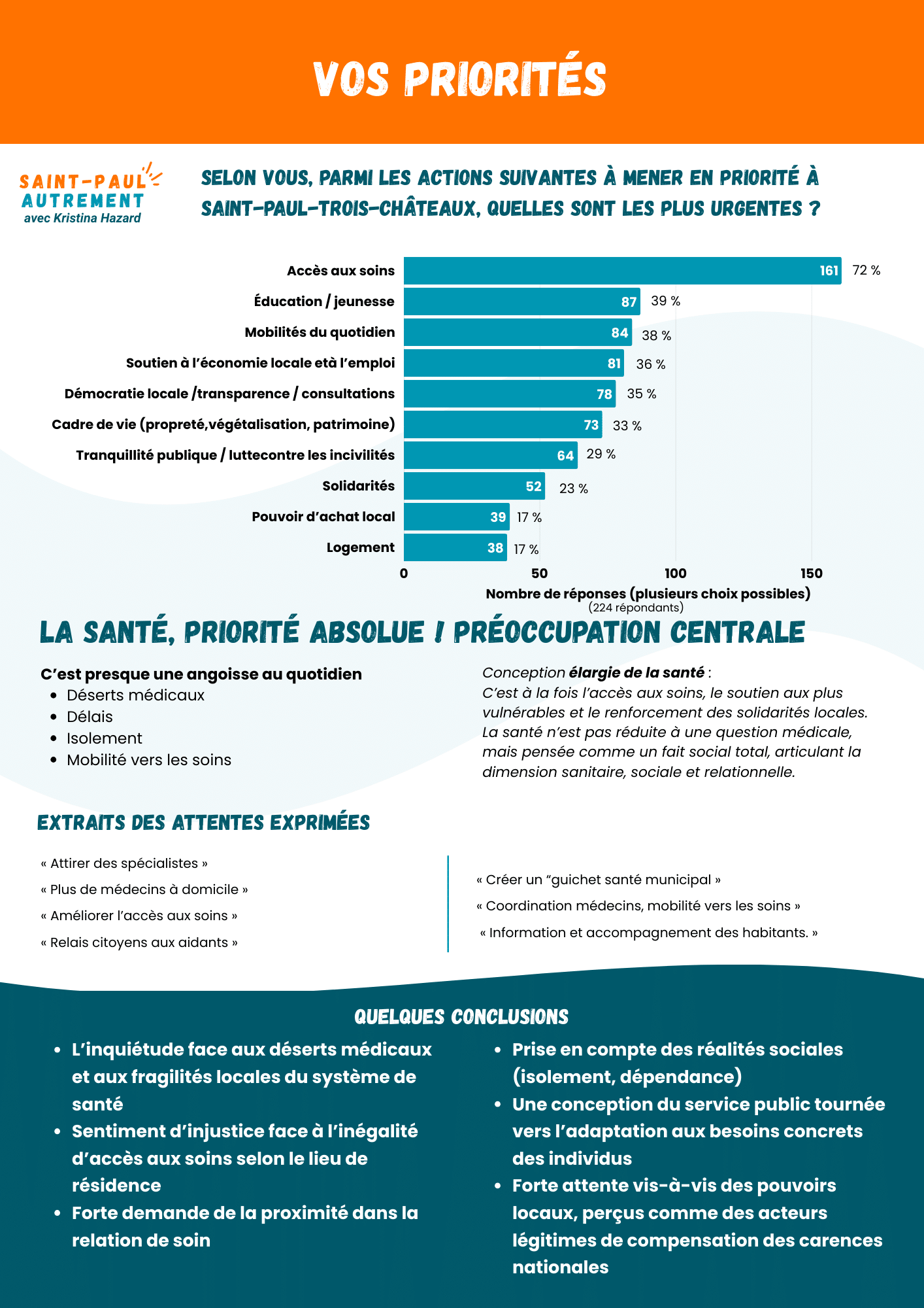 Ces thèmes reflètent les préoccupations concrètes des habitants. Ils nous permettent de mieux comprendre leurs besoins et leurs aspirations pour Saint-Paul-Trois-Châteaux. Ces informations, combinées à d’autres données fiables, nous aideront à prendre les bonnes décisions. Elles serviront à construire un projet cohérent et utile pour Saint-Paul-Trois-Châteaux.
